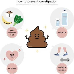 Constipation is characterized by hard, infrequent stools that are hard to pass. This is frequently caused by the colon moving slowly and absorbing too much water, which results in bloating, pain, and straining. Increasing water and fiber (fruits, whole grains, and vegetables), exercising frequently, not postponing bowel movements, controlling stress, and using over-the-counter drugs when necessary are the key to prevention and treatment. In order to rule out significant causes and consider remedies like prescription medications or biofeedback, severe or chronic constipation requires medical attention.