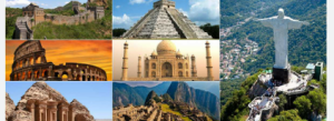 Wonders of the earth. The New Seven Wonders (Great Wall, Petra, Colosseum, Chichén Itzá, Machu Picchu, Taj Mahal, Christ the Redeemer) and the Ancient Seven Wonders (Pyramids of Giza, Hanging Gardens of Babylon, etc., only Giza remains) are the most well-known examples of “Wonders of the Earth” lists of magnificent man-made or natural phenomena. Lists of Earth’s most magnificent natural locations, such as the Great Barrier Reef, expansive salt flats, and distinctive ecosystems that exhibit amazing biodiversity and geological wonders, are also available.
